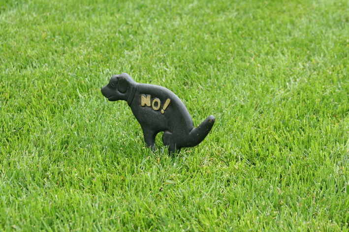 Табличка в виде гадящей собачки предупреждает, что это дело запрещено.